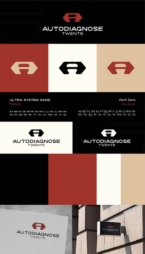 Zijn wens was een strak en modern logo met een luxe uitstraling. Hij wilde voornamelijk graag rode kleuren, en graag de letter "A" in het logo. Hierbij heb ik ongeveer 40 ideeën geschetst, en daar 4 concrete versies uit voortgezet (zie de 4 brandboards). Bij de eerste versie was het idee om de A in de vorm van een OBD-stekker te maken, de stekker waarmee hij auto's uitleest. Bij het tweede ontwerp wilde hij graag het schild wat je terugziet in logo's zoals die van Ferrari, Porsche en Lamborghini, maar dan moderner. Bij het derde idee werd er gevraagd om simpelweg de letters "A" en "T" in een autobadge-achtig lettertype, zoals bij het logo van de M3. Bij het vierde idee koos ik voor de letter A in een isometrische vorm, met als inspiratie een auto-badge.